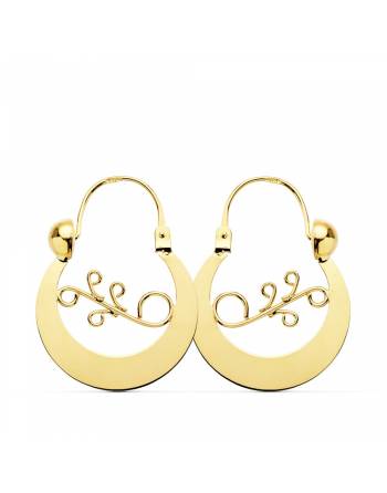 Atis, pendientes de aro canarios en oro amarillo 18k y medidas de 27x20 mm. Su nombre guanche, "el que tiene el viento", se refleja en ese calado interior que deja fluir el aire con pura elegancia. Tradición y libertad en una joya sublime. ¡Brilla con garra canaria!